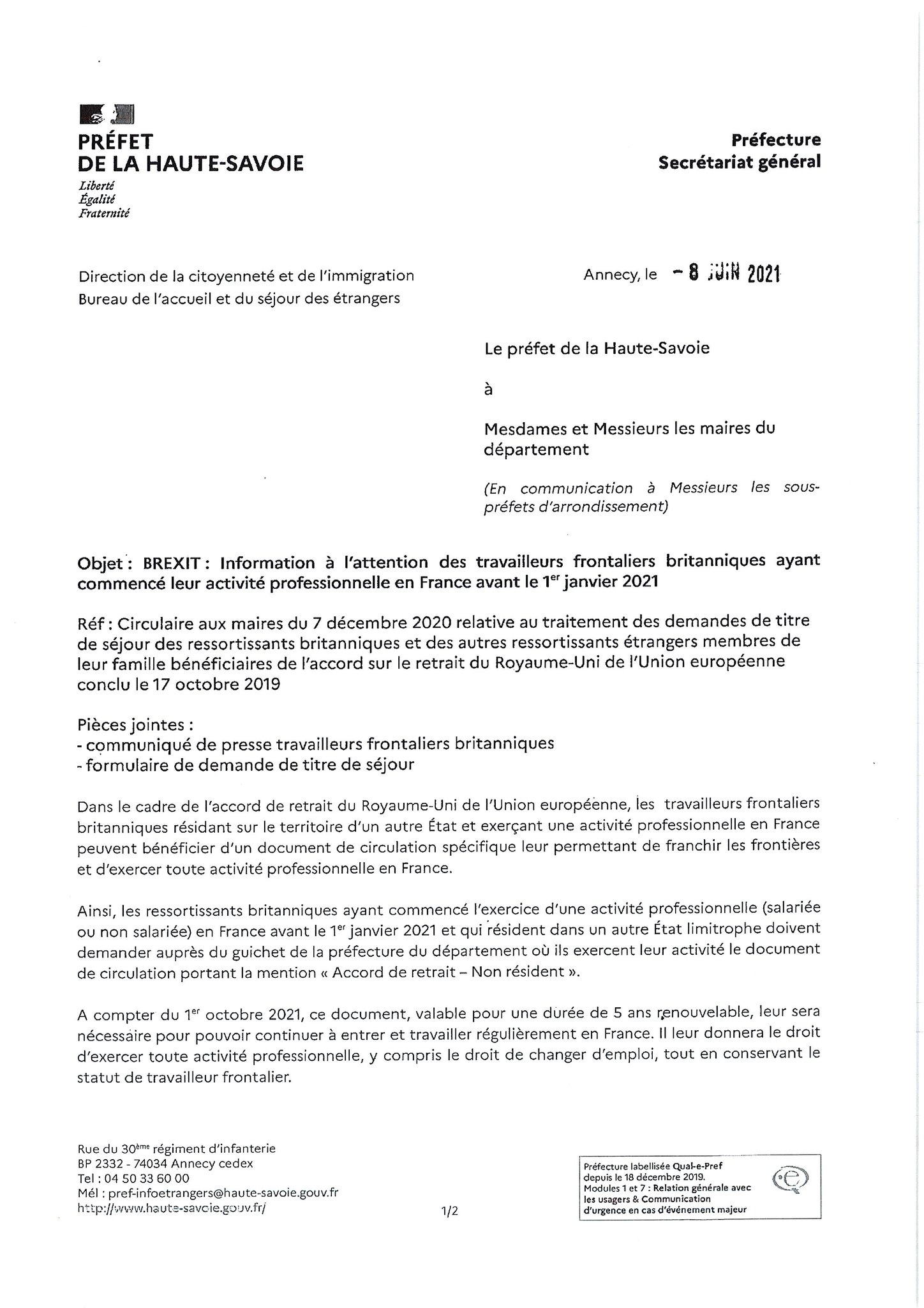 Correspondance : B.P. 200 - 74005 ANNECY DEDEX